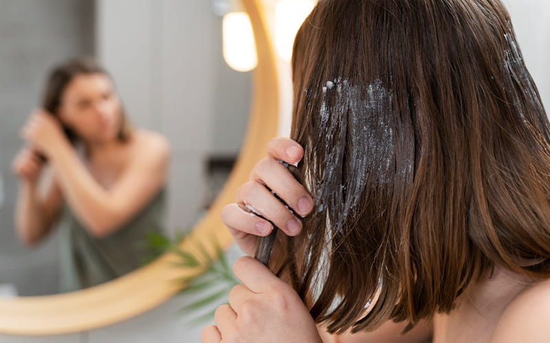 Aplica dos o tres veces por semana una mascarilla rica en proteínas e ingredientes como coco, aguacate, vitamina B o E. Si prefieres lo natural, una mezcla de avena, yema de huevo y aceite de oliva también funciona. Déjala actuar al menos 20 minutos y enjuaga primero con agua tibia y luego templada para sellar la cutícula.