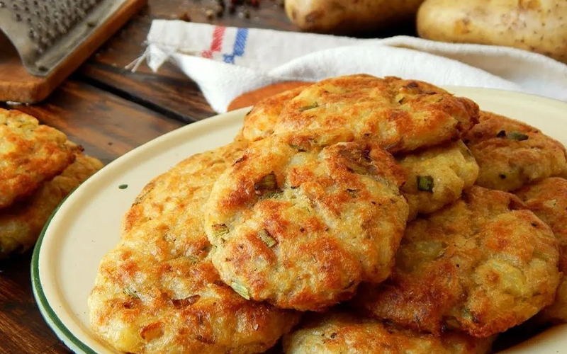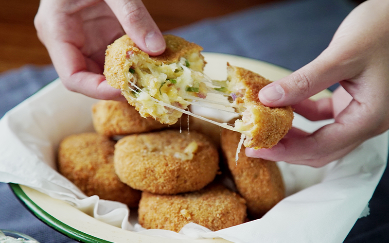 Cocinar por 15 minutos a 180 °C o hasta que las bolitas de papa estén doradas por fuera.