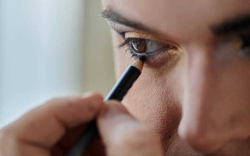 El primer paso es fundamental: pintar la línea de agua inferior con un lápiz color crema. Este gesto, aunque sutil, hace que el ojo se vea más grande, despierto y limpio al instante. A diferencia del blanco, el tono crema se funde mejor con el tono natural de la piel, dando un acabado suave y muy favorecedor.