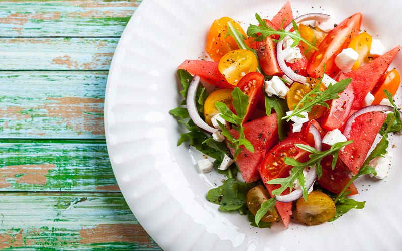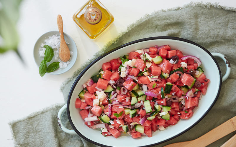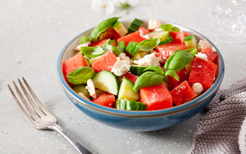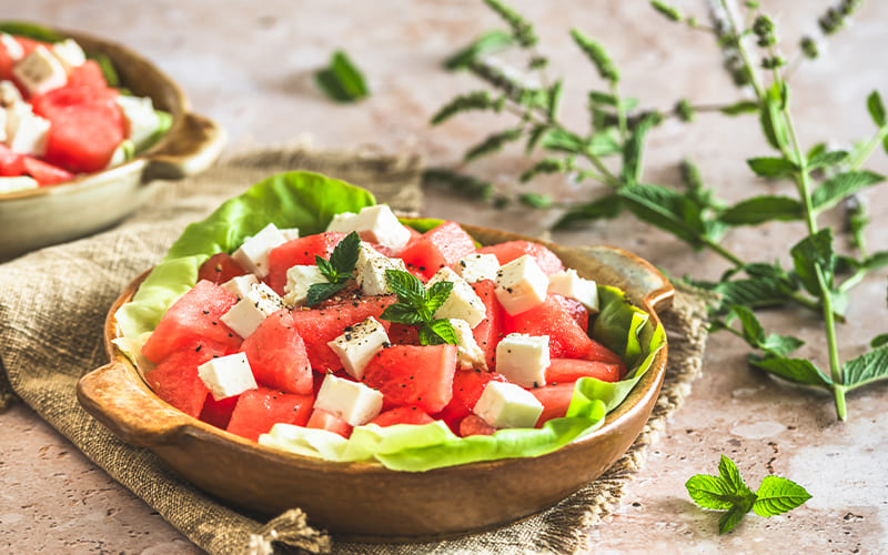 Ensalada fresca de sandía, queso feta y menta