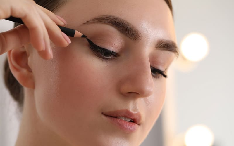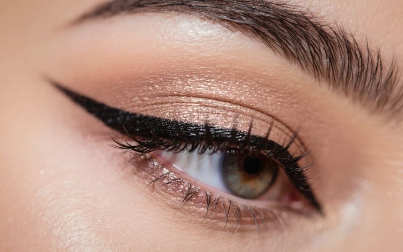 Oscurece suavemente el lagrimal y dirige el eyeliner hacia el centro para acercarlos visualmente. Evita extender demasiado el maquillaje hacia afuera.