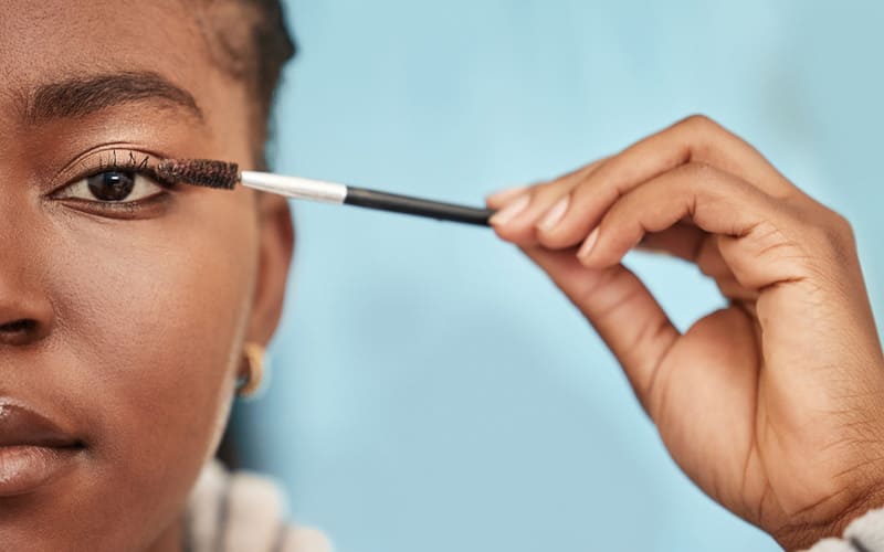 La luz es tu mejor aliada. Usa sombras claras o satinadas y lápiz beige en la línea de agua. Finaliza con máscara desde la raíz para abrir visualmente el ojo.
