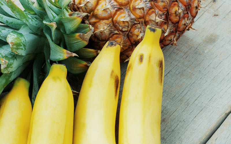 - Corta las bananas y el ananá en trozos y congelalos por al menos 4 horas.