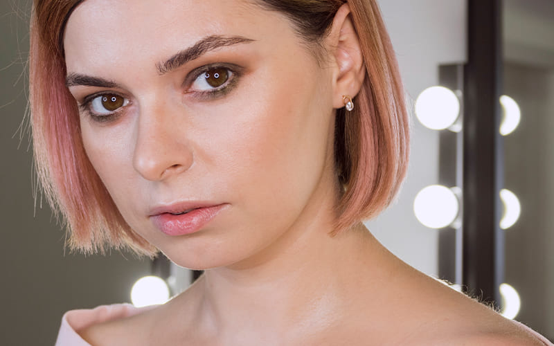 Para unificar el tono, los polvos compactos aplicados con brocha y en pequeñas dosis serán suficientes. En los ojos, opta por sombras en tonos nude, rosados o marrones, evitando colores metálicos o demasiado oscuros. Es preferible no usar delineador negro en el párpado inferior, ya que puede endurecer la mirada. Una capa ligera de máscara de pestañas será suficiente para abrir la mirada sin sobrecargarla.