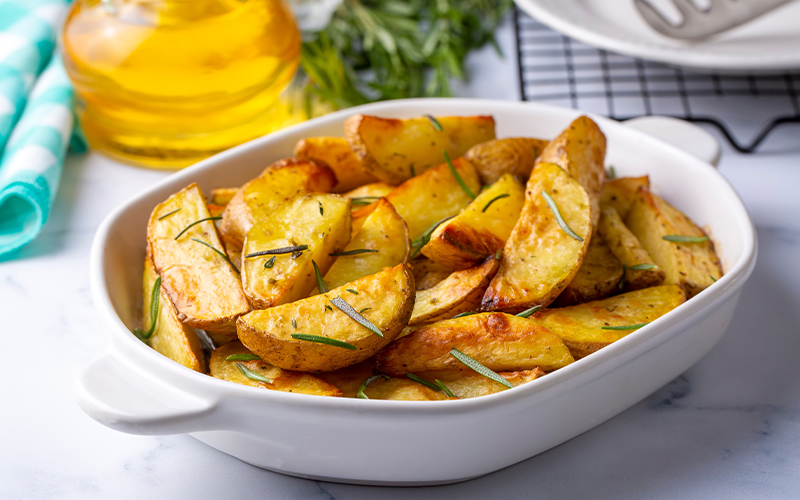 - Una vez listas, corta las papas en trozos irregulares para darle un aspecto rústico.